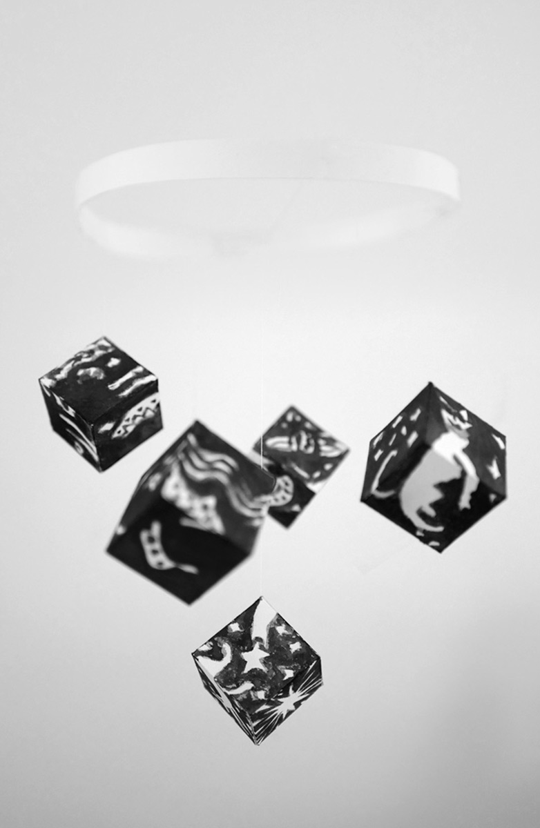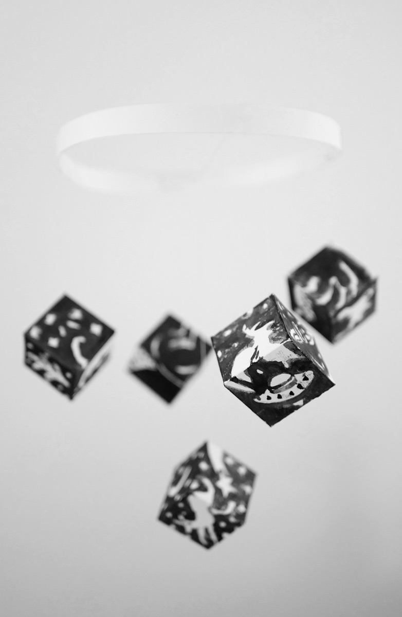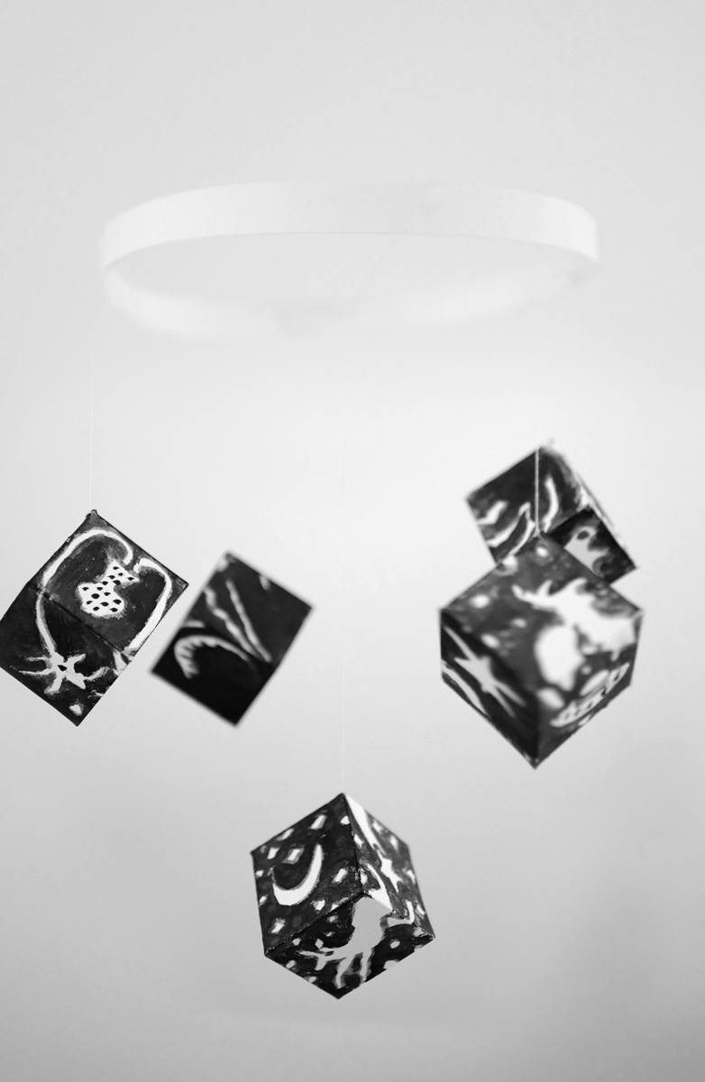 Handgefertigtes Original Baby Kontrastbild: Himmelszelt in Schwarz-Weiß